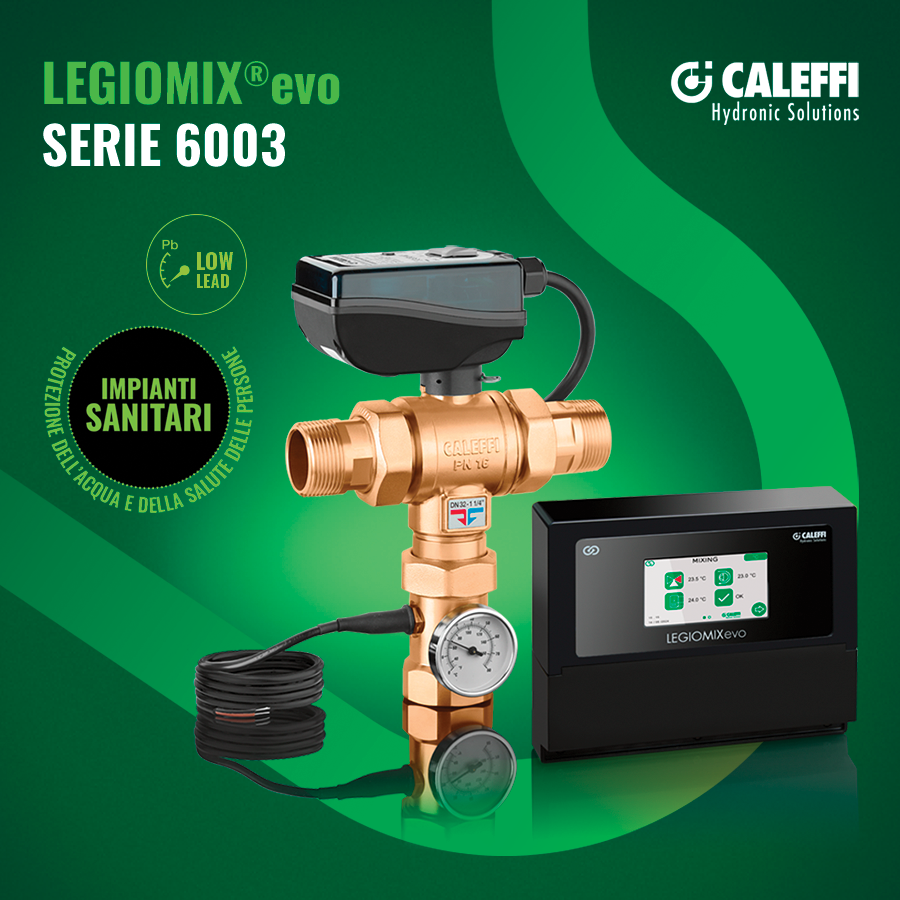 Con questa visione Caleffi Spa ha progettato LEGIOMIX®evo serie 6003, il nuovo miscelatore elettronico evoluto che combina disinfezione termica programmabile e connettività smart. Il dispositivo riscalda periodicamente l’acqua a livelli letali per la Legionella, monitorando costantemente la temperatura per garantire sicurezza e ridurre drasticamente i rischi per la salute.