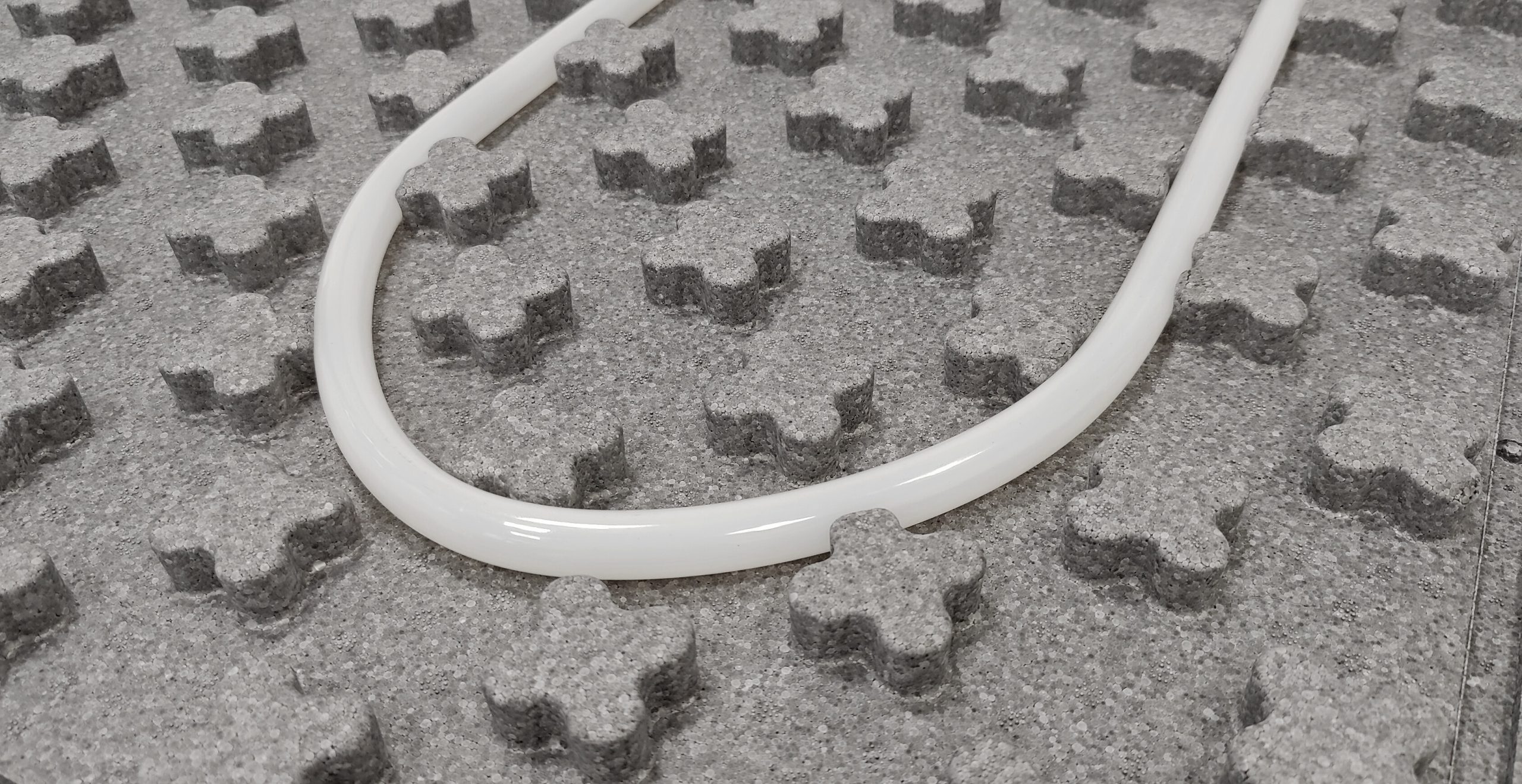 Elemento centrale del sistema è il pannello realizzato in polistirene sinterizzato con grafite, conforme alla normativa UNI EN 13163, caratterizzato da un’elevata resistenza meccanica (500 kPa) e da una conducibilità termica pari a 0,032 W/(m·K). Disponibile negli spessori 15, 24 e 34 mm, alloggia la tubazione RDZ Tech PE-Xa Ø 17 mm in polietilene reticolato ad alta densità dotata di barriera anti-ossigeno prodotta in conformità alle normative DIN 4726 e DIN 16892.