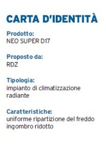 Un fiore all’occhiello dell’ampia gamma di prodotti RDZ è il sistema di raffrescamento e riscaldamento a pavimento ribassato NEO SUPER D17, nato dalla necessità di minimizzare l’inerzia termica e di contenere gli ingombri dell’impianto radiante, garantendo al contempo ottimi rendimenti.