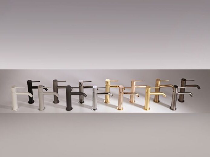 La collezione comprende più di sessanta articoli tra miscelatori, soffioni e soluzioni per la doccia, che consentono di realizzare composizioni coordinate. È disponibile sia in versione monocomando sia nella più classica configurazione a tre fori, unendo così la tradizione della rubinetteria a un linguaggio formale contemporaneo.