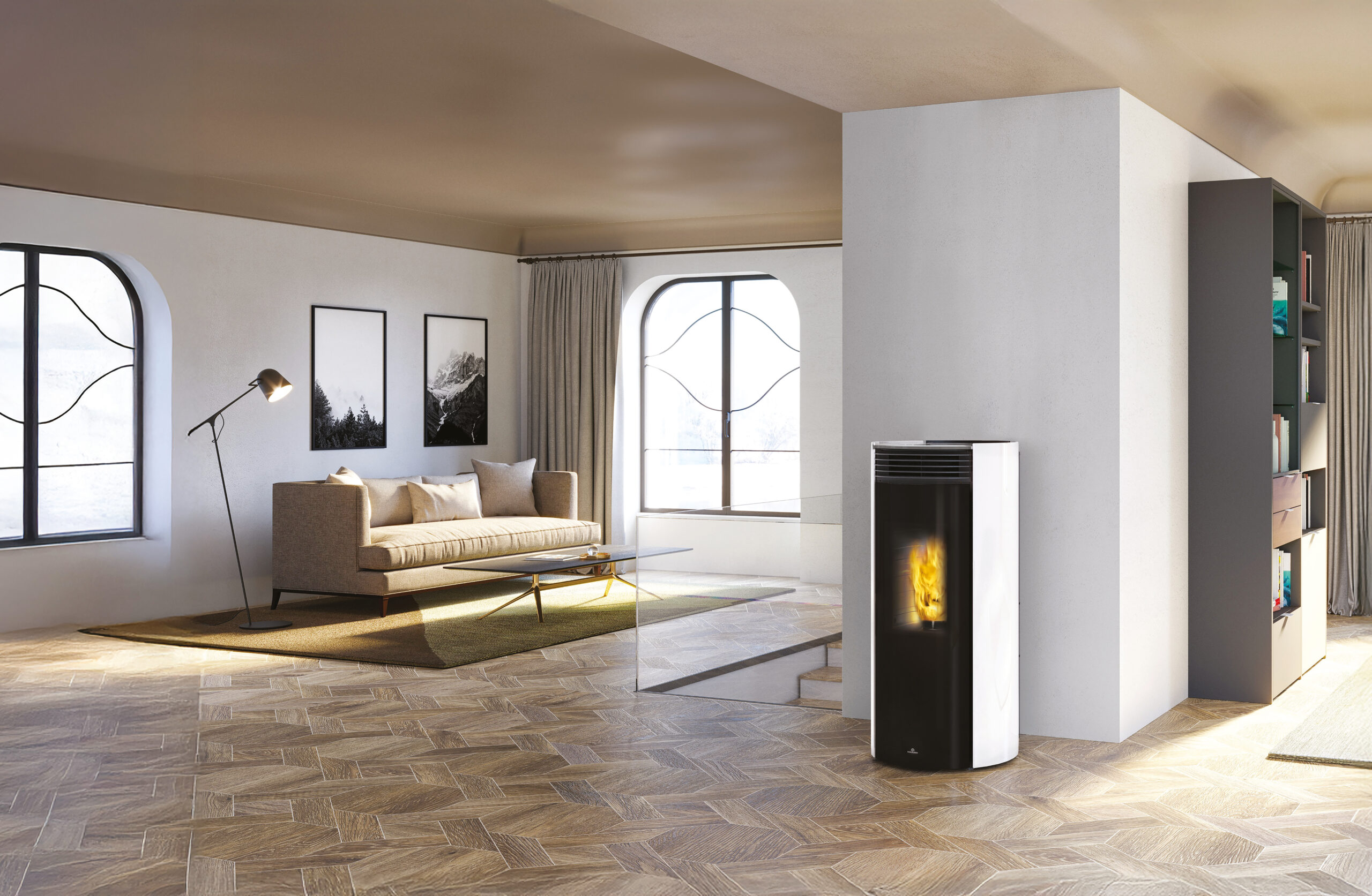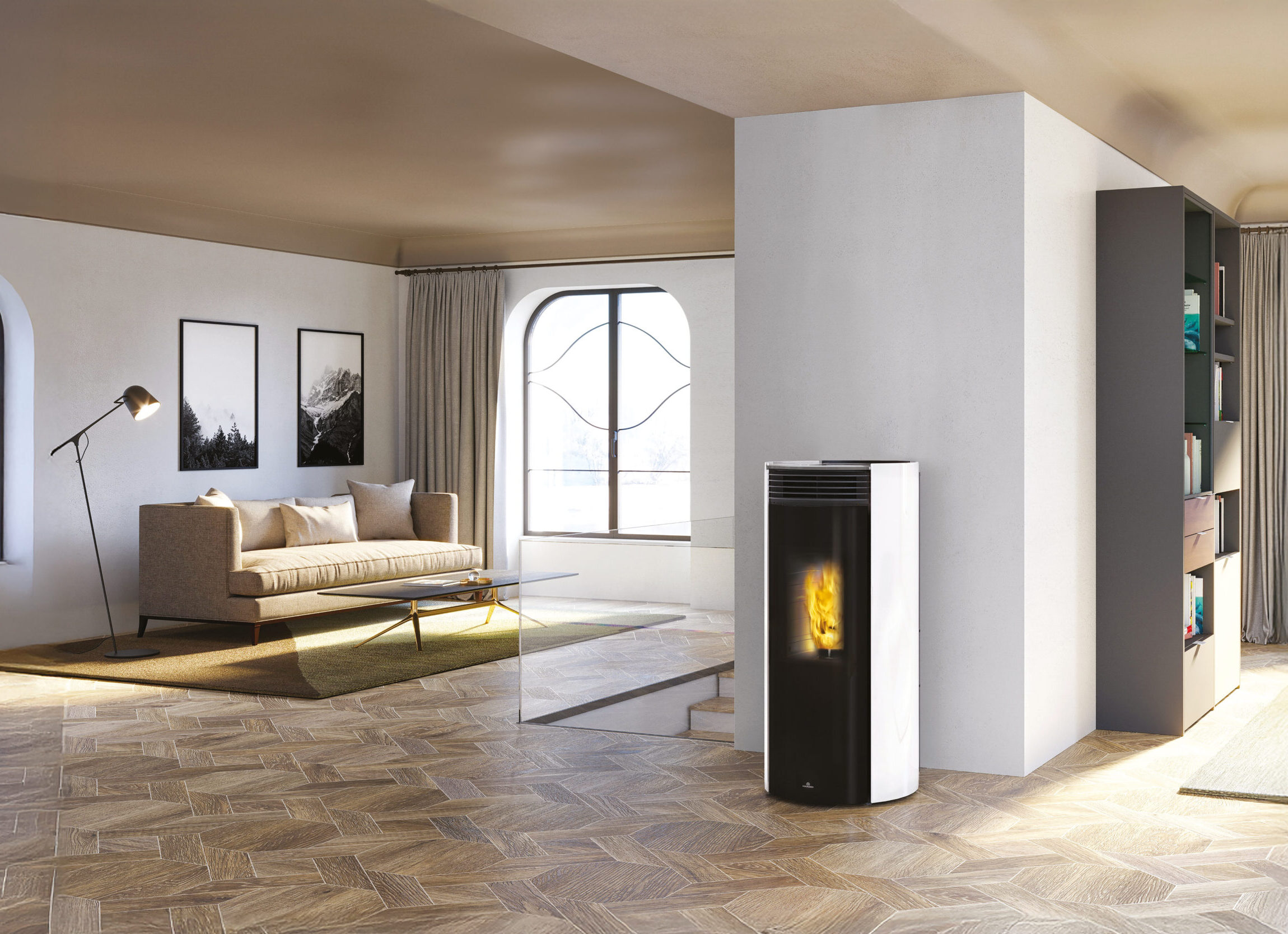 Libra (disponibile nei modelli 7, 9+, 11+, 13++) è la nuova stufa a pellet di Edilkamin che racchiude l’essenza del comfort naturale grazie ad una perfetta combinazione tra design e tecnologia. La sua forma cilindrica essenziale ed elegante è esaltata dal rivestimento interamente in vetro: a scelta nero o bianco per il top e i fianchi, nero con effetto “Magic” per la porta frontale, che a stufa spenta nasconde il focolare.