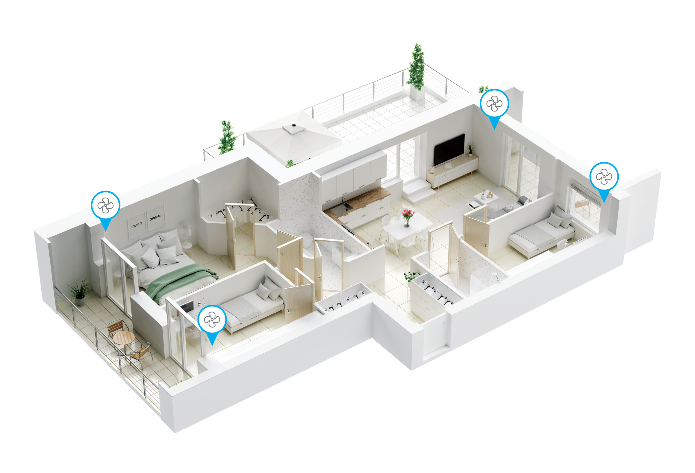 Grazie alla possibilità di integrazione tra unità di VMC FlowPLUS, app di monitoraggio Helty Home e sensori ambientali, Helty evolve la ventilazione meccanica controllata in un vero e proprio ecosistema intelligente per il benessere indoor, in cui tecnologie avanzate di filtrazione, ventilazione, rilevamento dei parametri IAQ lavorano in sinergia per garantire un comfort abitativo completo e sostenibile.